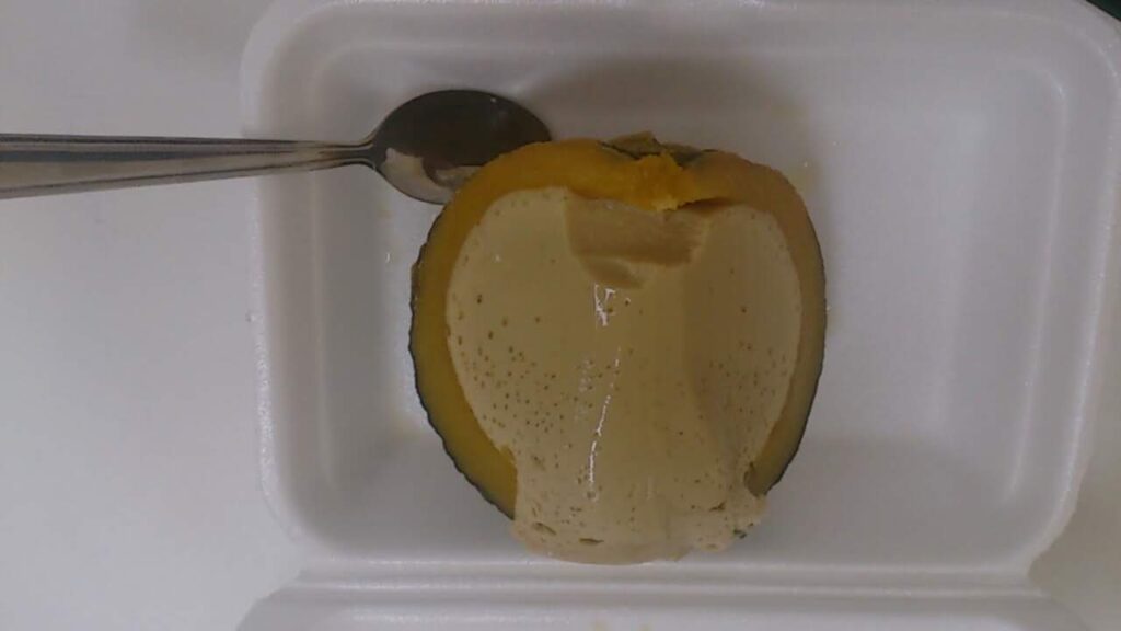 正体は、ゆでたカボチャを器にしたプリンでした。美味しかったですよ。